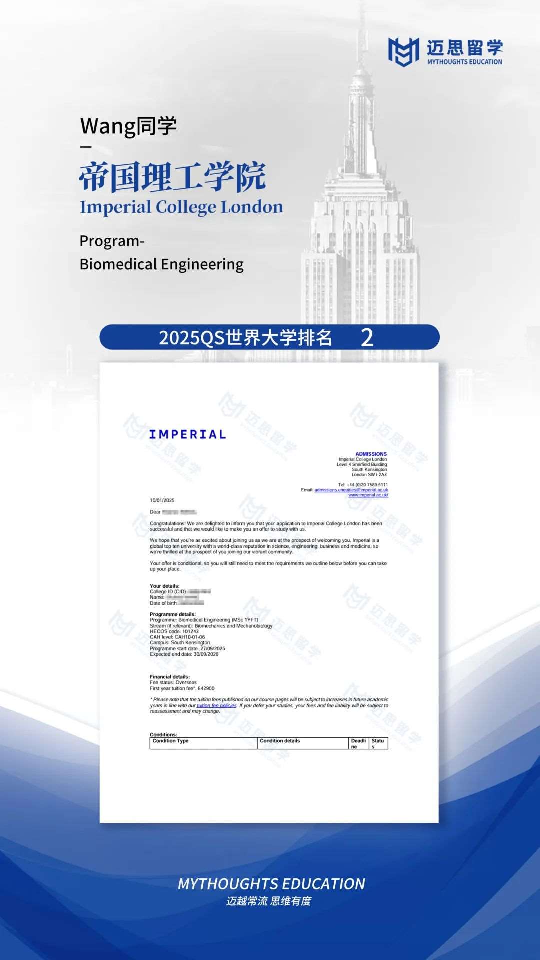 帝国理工学院|恭喜两位同学再获IC青睐