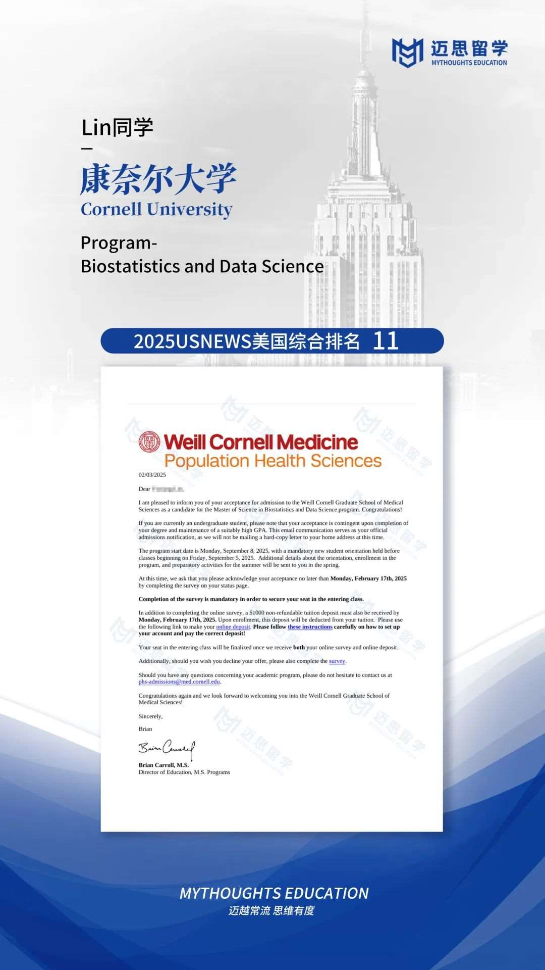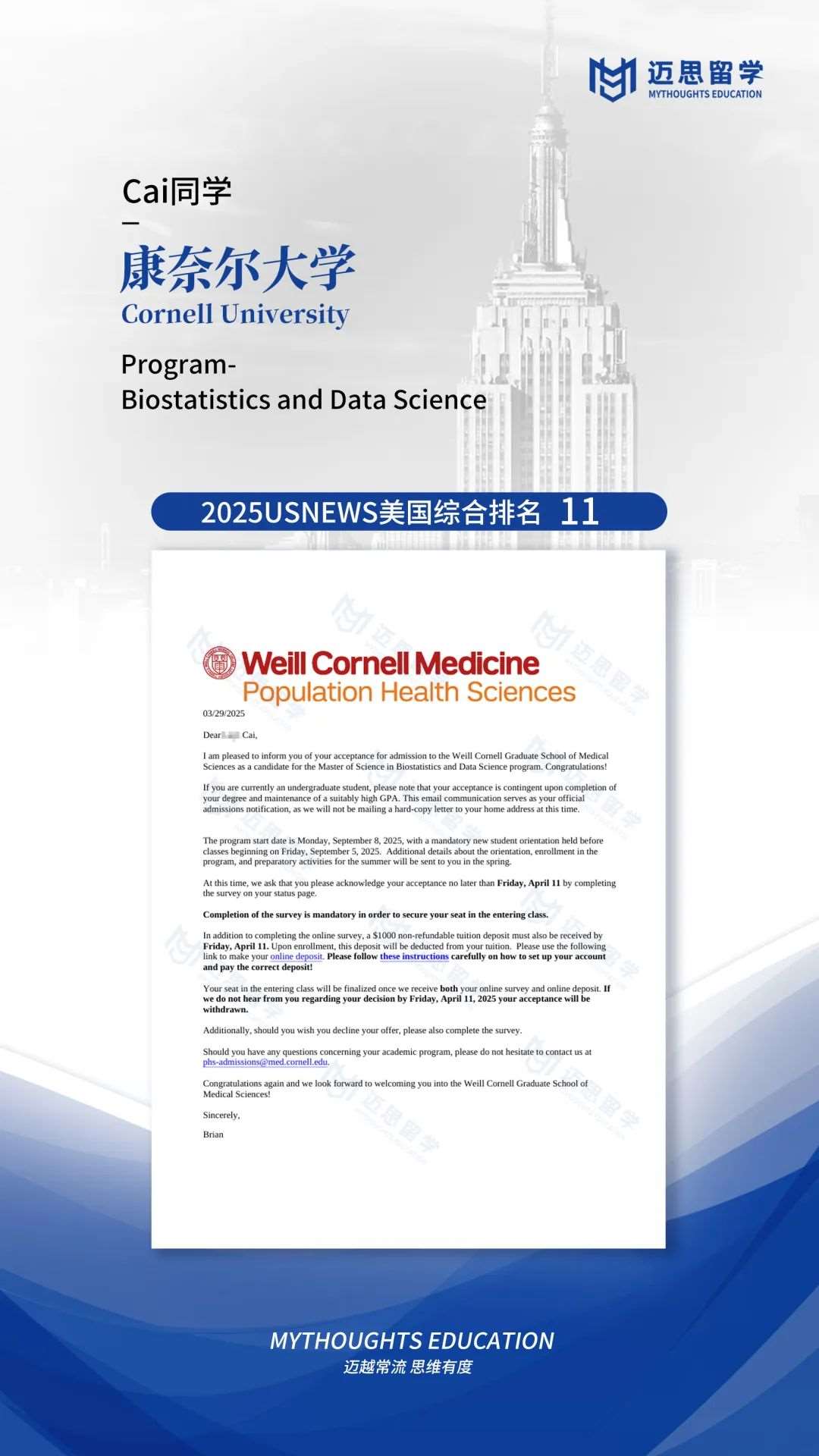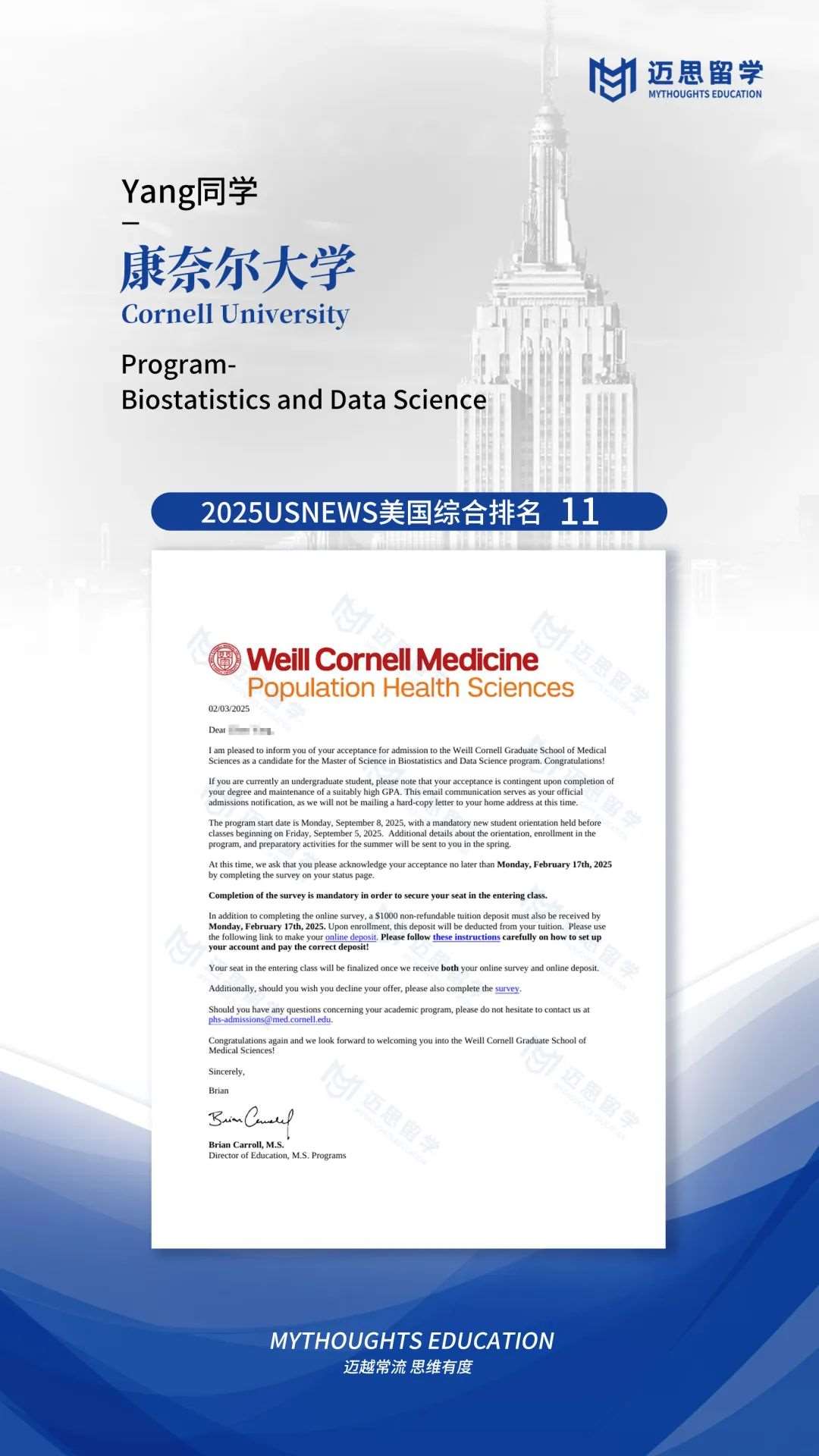 康奈尔大学|恭喜三位同学斩获Cornell