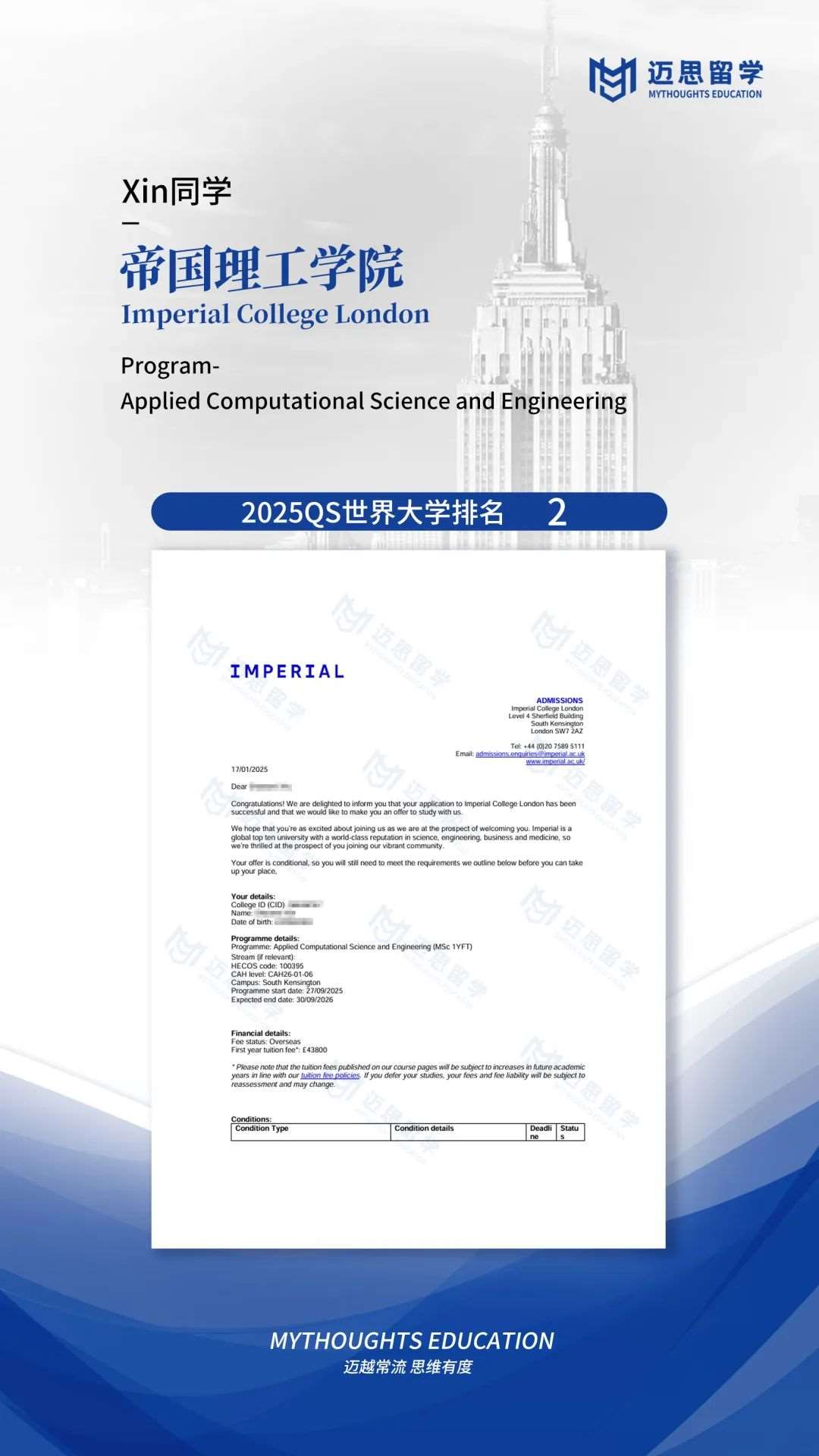 帝国理工学院|两枚IC重量级录取ACSE到手