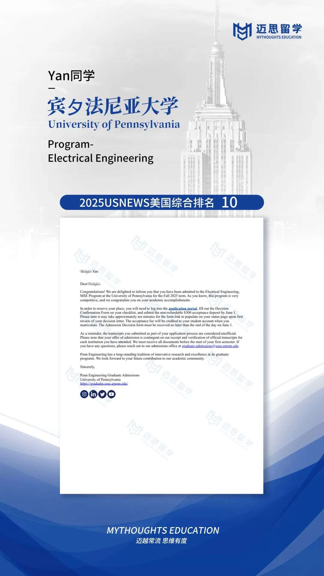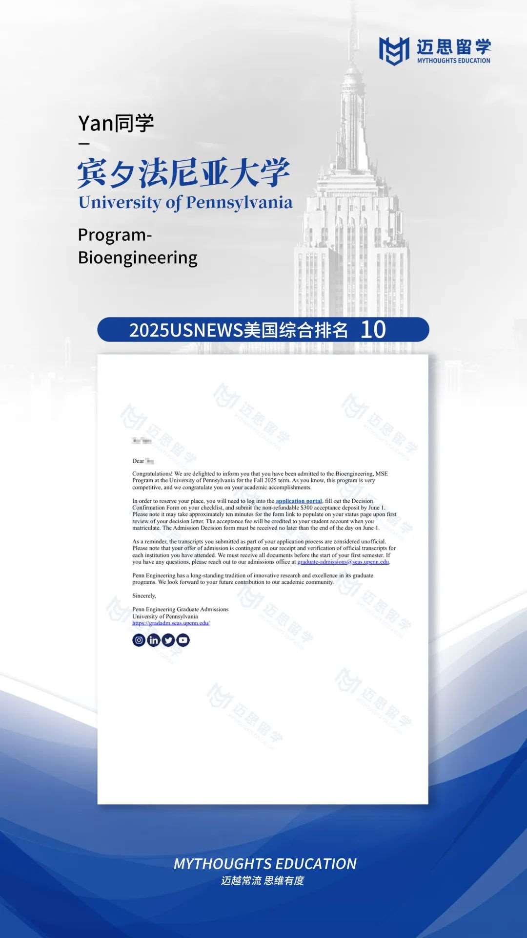 宾夕法尼亚大学|恭喜四位同学斩获藤校,剑指全球科研与产业高地~