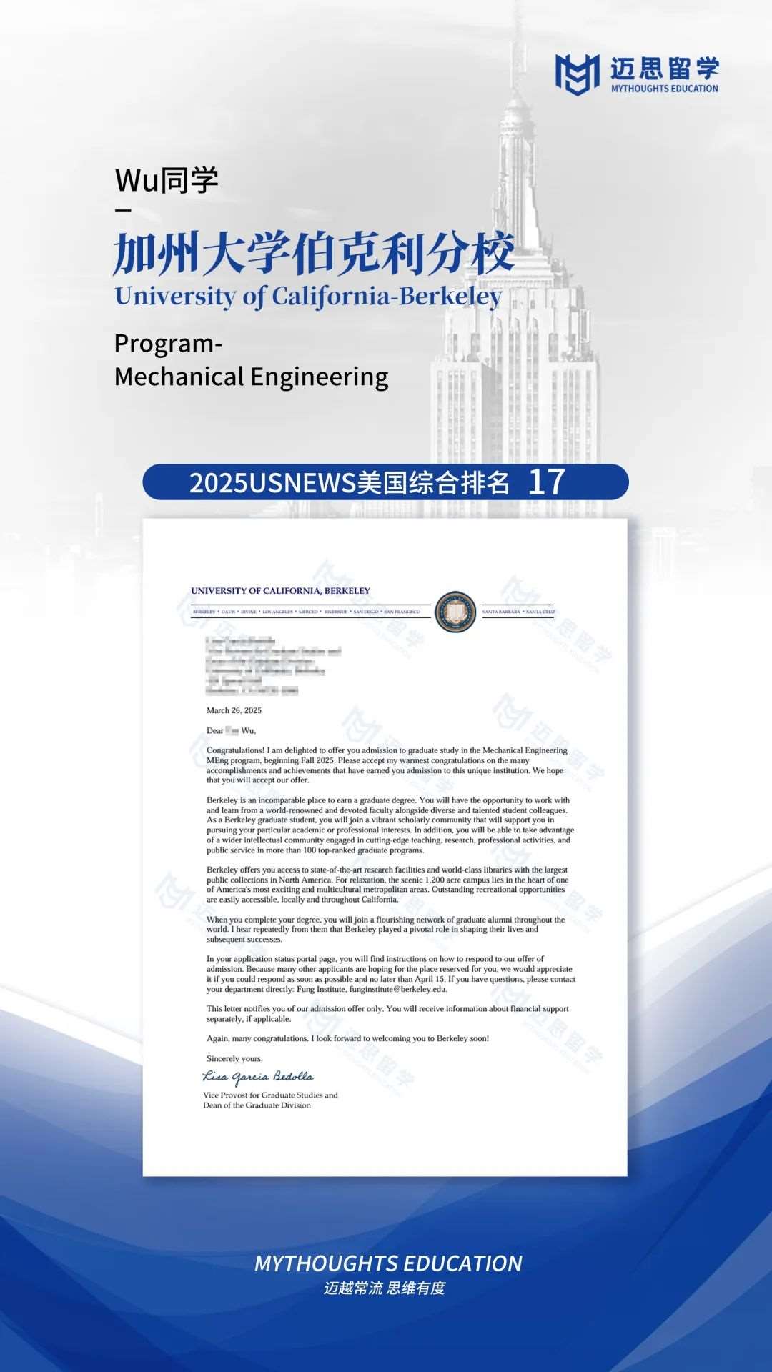 加州大学伯克利分校|恭喜两位同学斩获UCB,跻身拥有114位诺奖得主的学术殿堂~