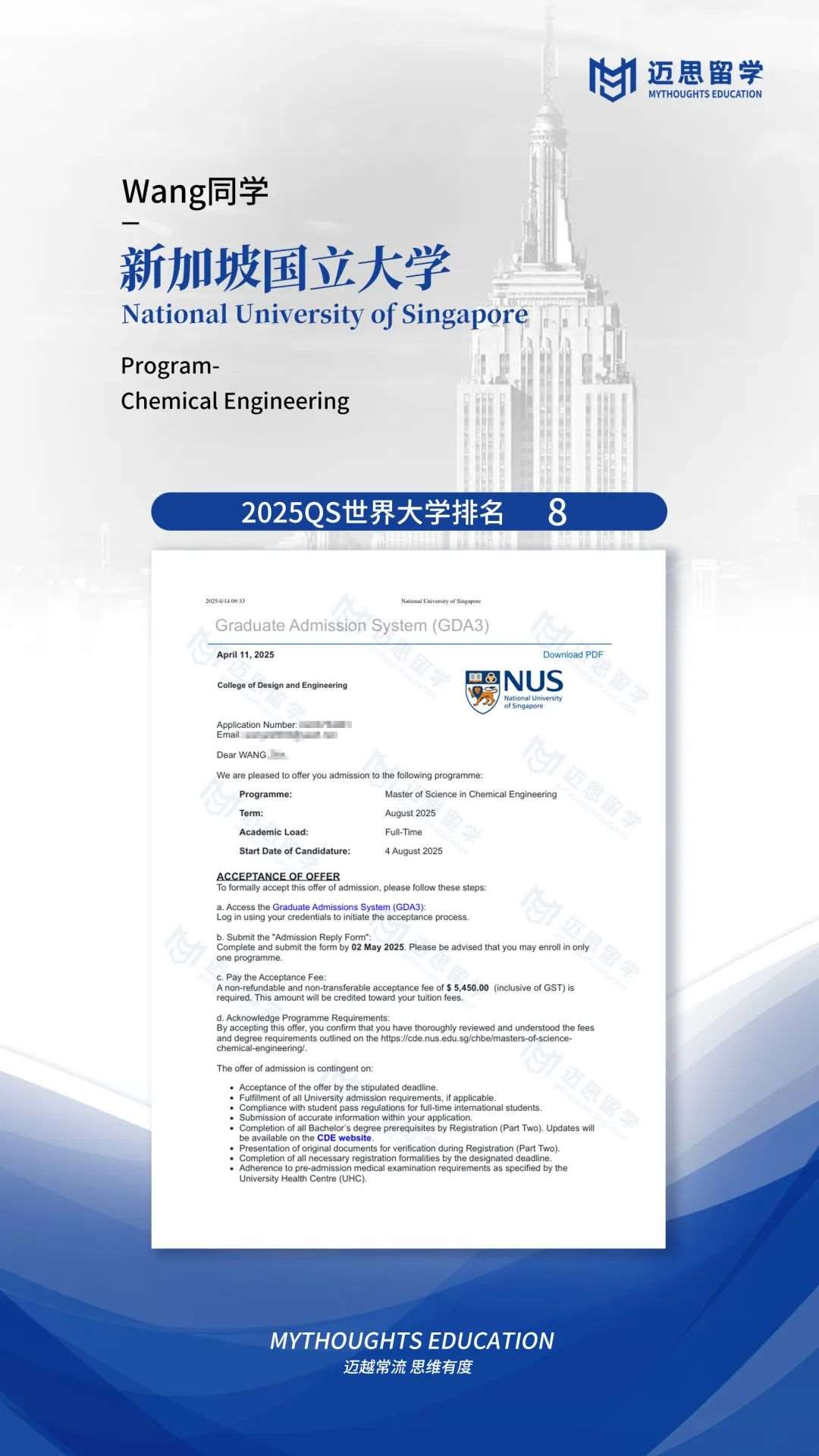 再来一枚新加坡国立大学录取,QS排名亚洲第*的学校稳稳当当~