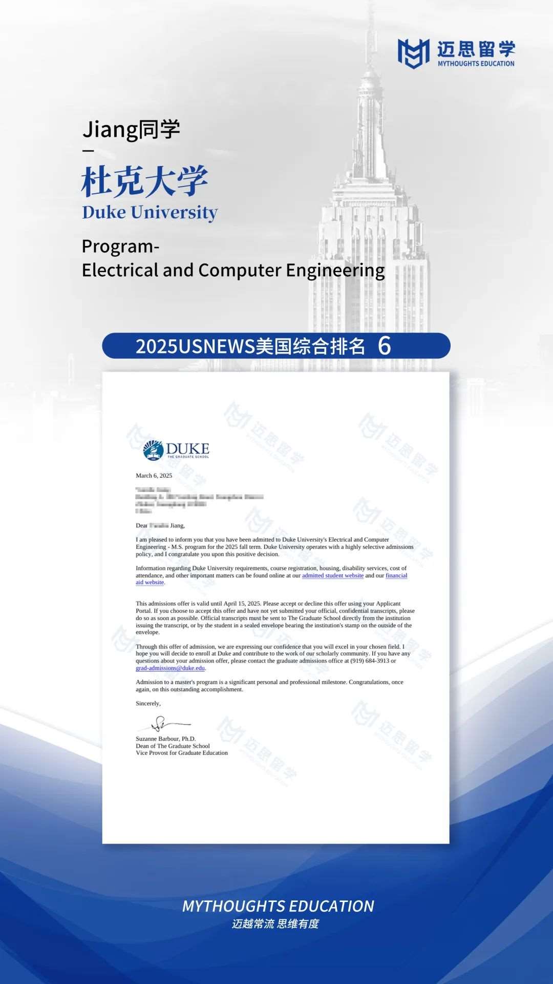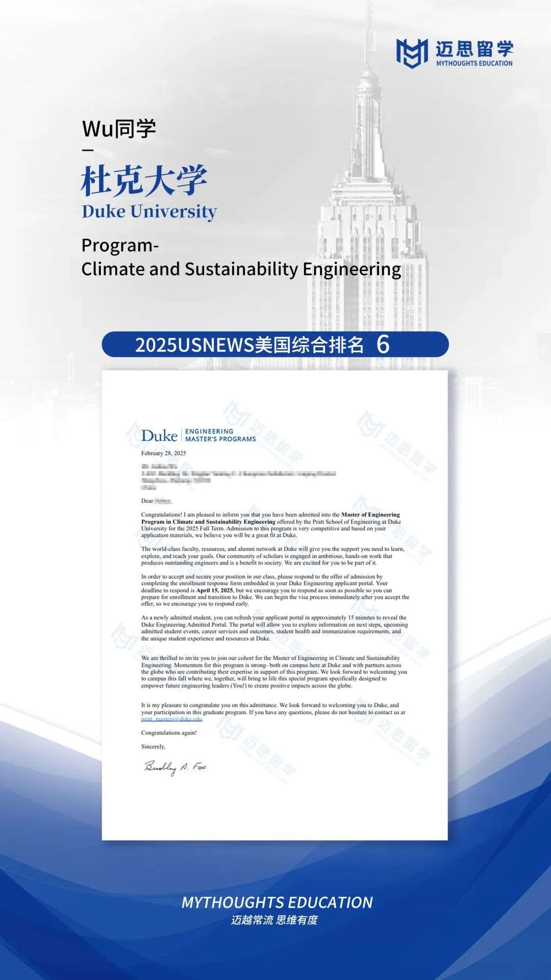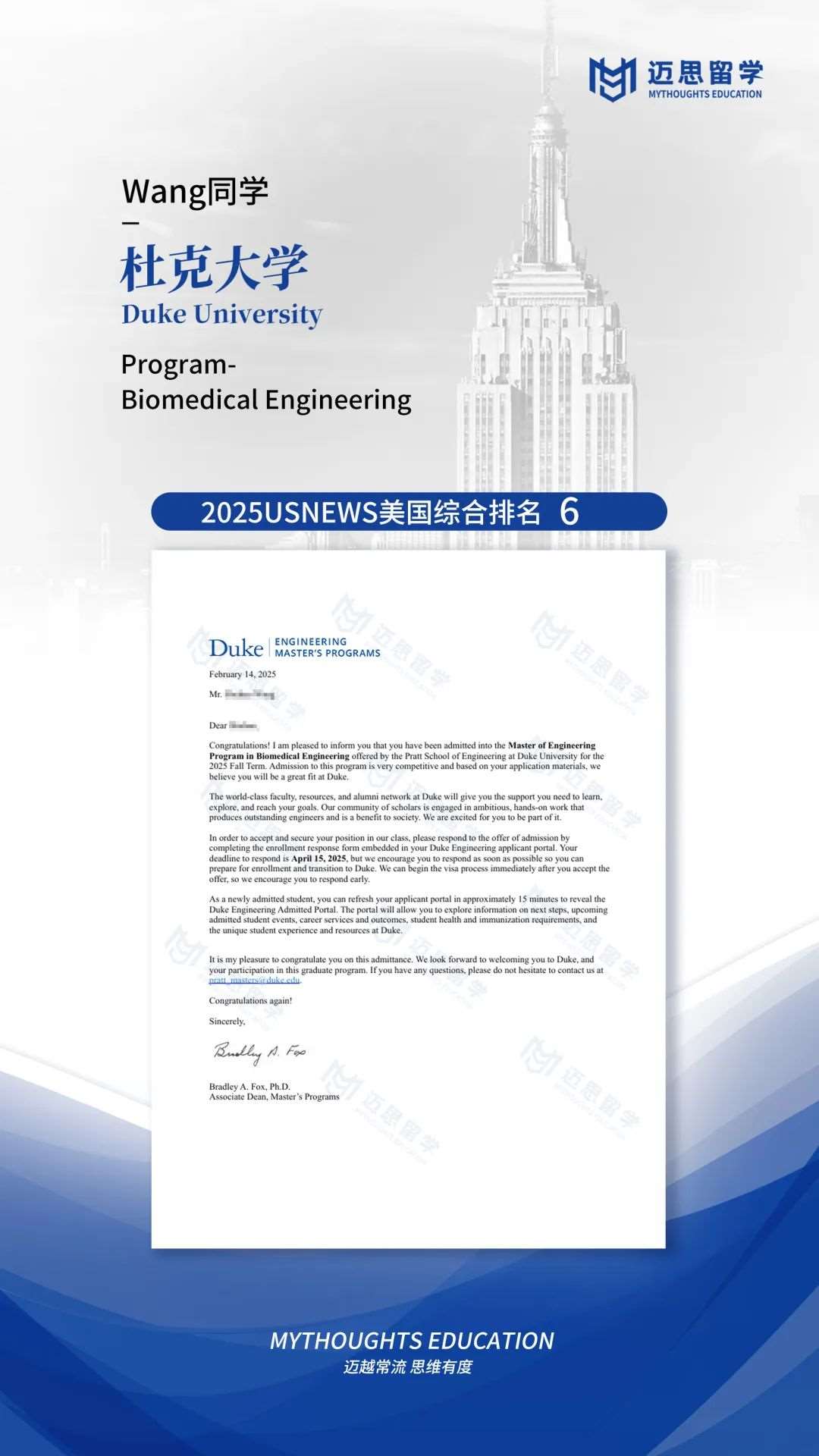 杜克大学|四枚全美第6的杜克录取,ECE、BME、ME、CSE~