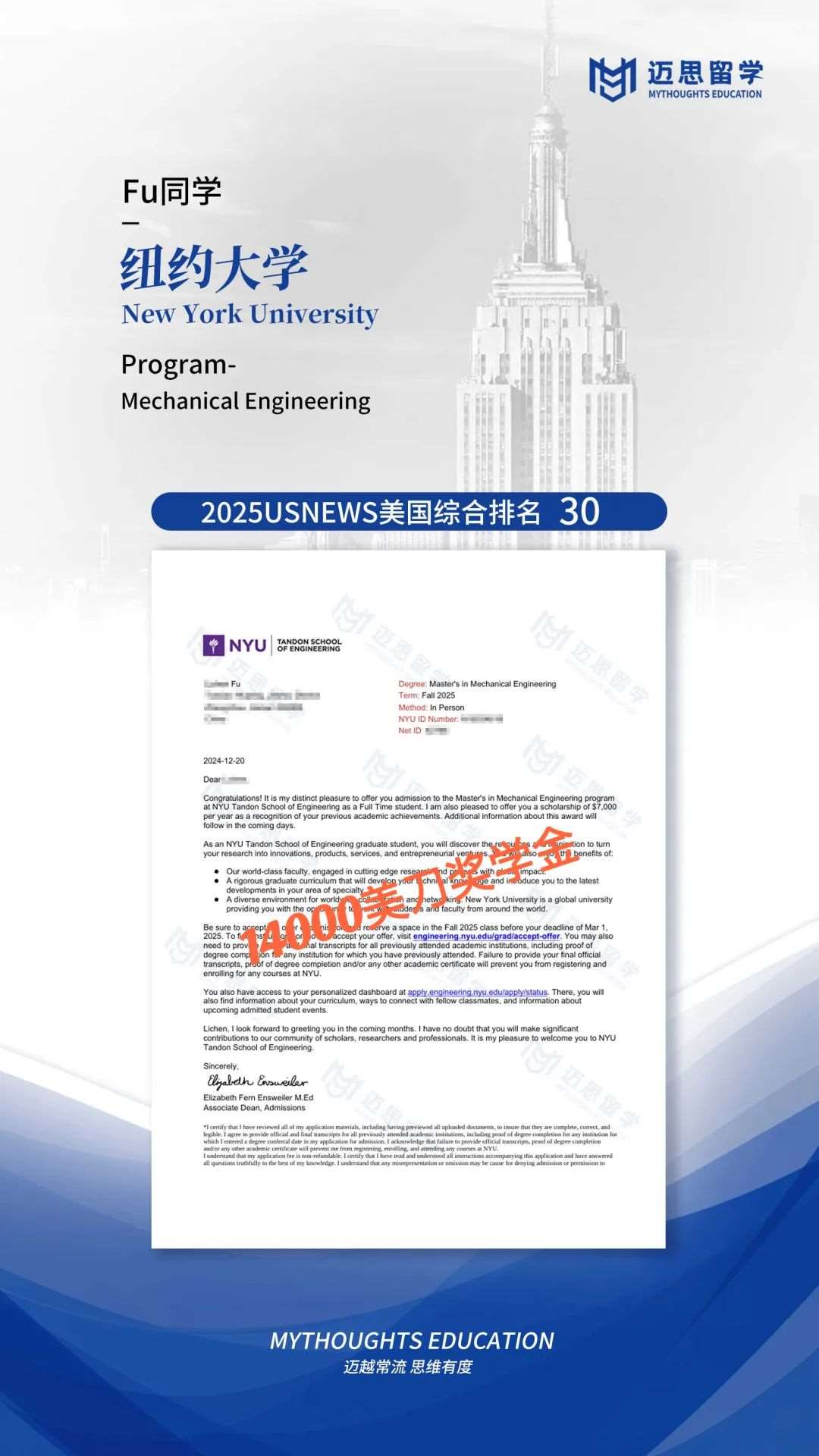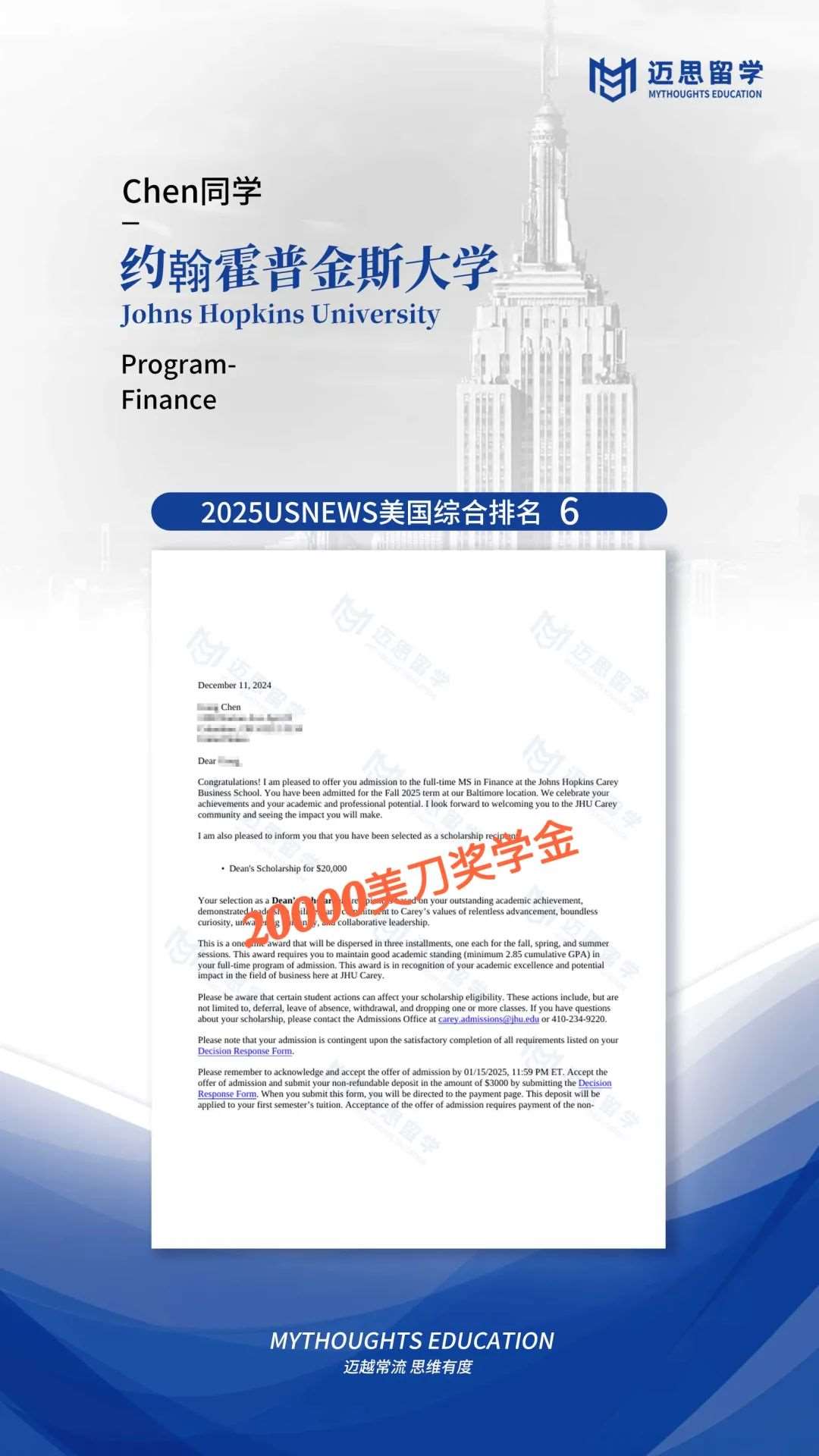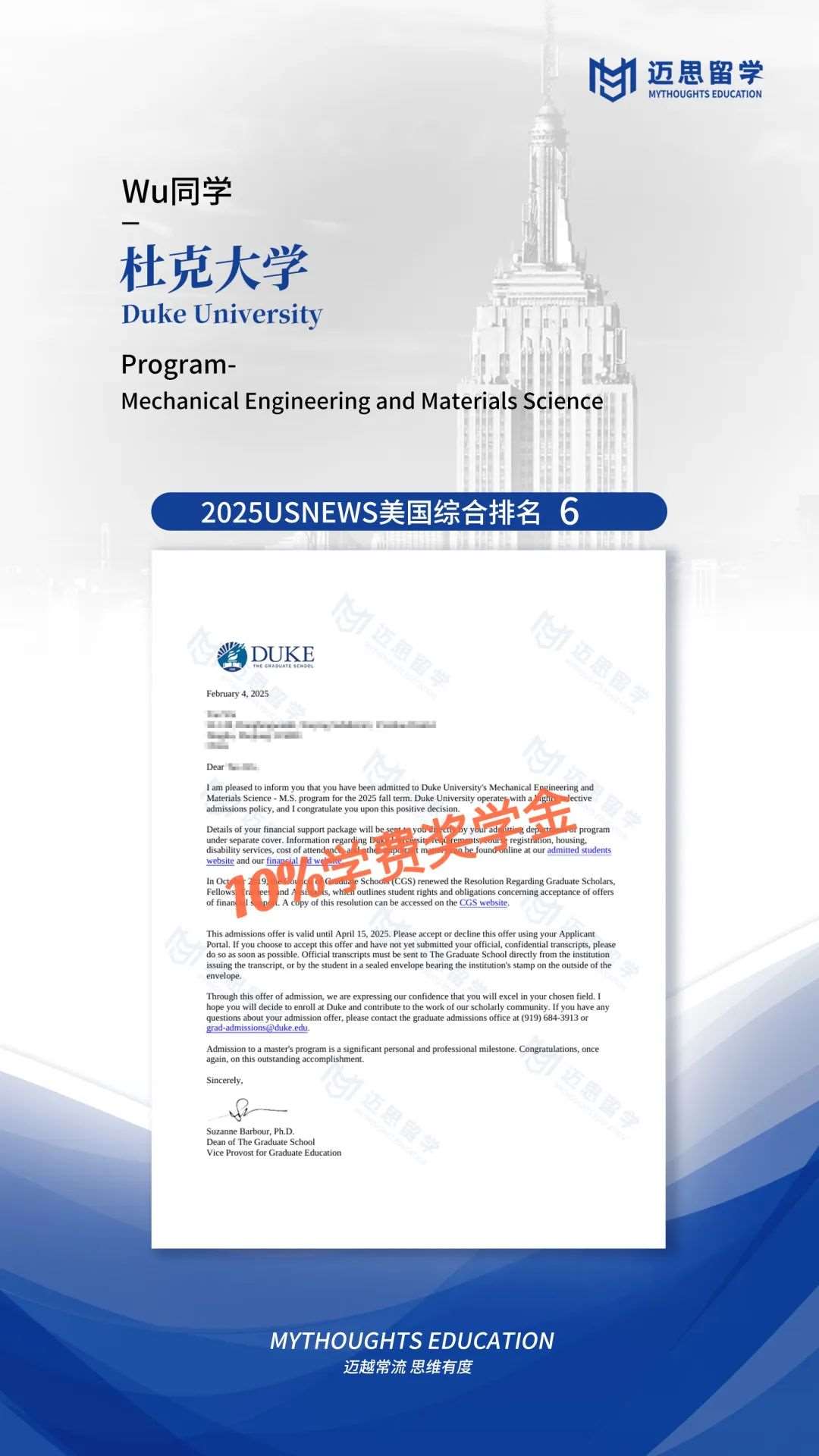 杜克、宾大、JHU、达茅、NYU|收获50多万人民币奖学金,五位学生被大学双重认可~